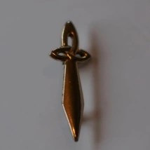 Creaven (below) has reproduced a limited edition of Una’s design in the form of a lapel pin which comes in both nickel-plated silver and gold and retails at E10.
